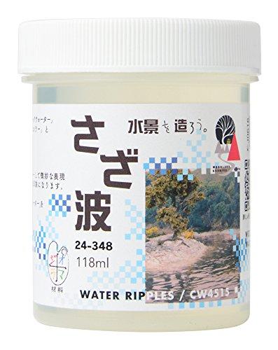 風がそっと吹き渡ってゆくような柔らかな水紋、吹き荒れる風に砕ける波、または流れ落ちる滝を造ることができるのが「さざ波」です。「さざ波」は「大波小波」に比べて柔らかく、水面に大きく広がる波を描くときに便利です。また従来の波造りの素材「ウォーターエフェクト」