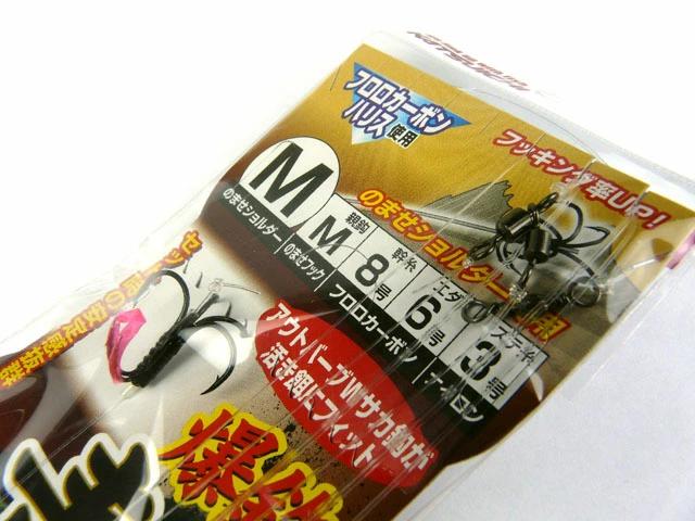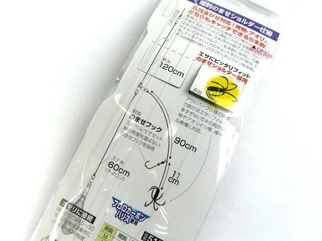 アウトバーブ仕様の2本のサカ鈎でアジ等へフィットし、外れにくい「のませショルダー」が確実なフッキング~取り込みへと導きます。少しかじって活エサをダメにするアオリイカのキャッチ率もアップ!