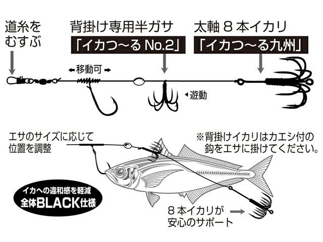 ■背掛けイカリ:イカつ~る No.2■掛け針:イカつ~る九州■ハリス:ブラックハリス5号■入数:2組