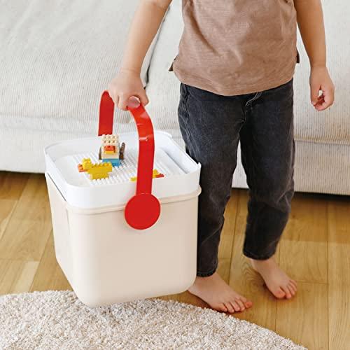 ■容器はお片付けをサポートできる形状になっており、フタの裏側にはブロックをはめることもできます。また、リビングになじむよう、外装は取り外しが可能です。