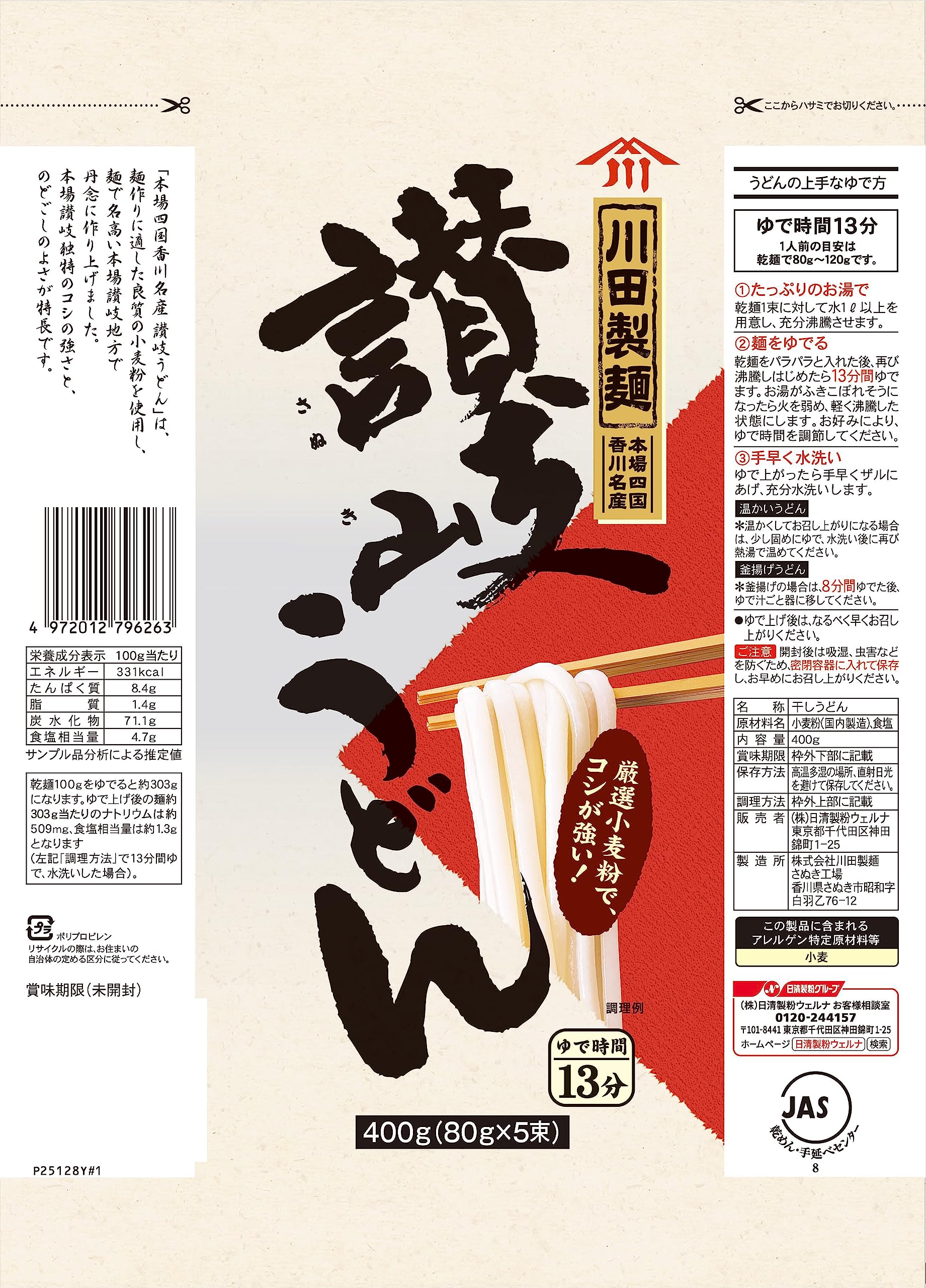 充分な加水で練り上げることにより、讃岐ならではのもちもちとしたコシのある食感とのどごし。