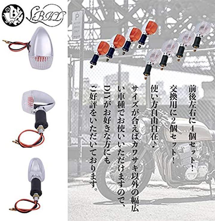 バリオス、エストレヤ、W400、W650などネイキッドでレトロでヴィンテージなカワサキタイプ用ウィンカー前後左右4個セットです。