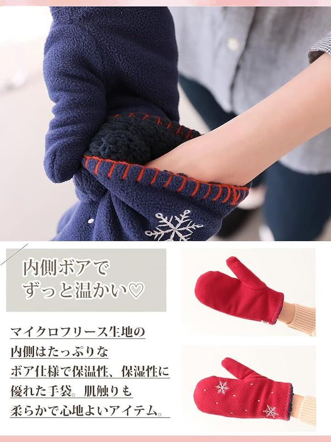 ミトンタイプは指が独立していない分、保温性も保湿性ももばっちり。