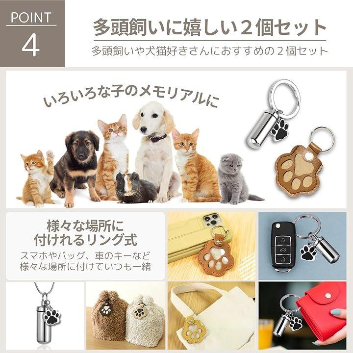 キーホルダーとペンダントのセットは、犬猫グッズやペットアクセサリーとしても人気で、多頭飼いの飼い主にも喜ばれます。