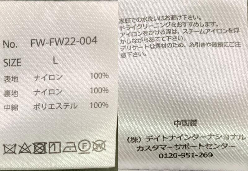 生活臭、襟や袖口に汚れ、左袖に糸ほつれなど見られます。右ポケットに糸ほつれがあり、中綿が露出している箇所があります。写真の物・状態が全てです。商品画像に写らないイタミキズ汚れがありましてもユーズド商品となりますので返品はお断り致します。ユーズド商品であることに、ご理解下さい。状態に関してご不明な点がございましたらお気軽にお問い合わせ下さい。[品番]FW-FW22-004[素材]表ナイロン100%※表地の一番多く使用している素材のみ表記しております。それ以外の素材表記につきましては品質タグ画像をご参照下さいませ。[カラー]KHAKIGREEN/カーキグリーン[サイズ]表記サイズL着丈約73cm肩幅約58cm身幅約70cm袖丈約57.5cm■着丈後ろ襟元の切替え部分から裾下まで計測■身幅脇と袖部の境界を左右の脇から脇まで計測■肩幅肩先から肩先まで計測■袖丈肩先から袖の端までを計測■裄丈襟を含めず、後ろ襟ぐりの中央から肩を通って袖口までの長さ※弊社独自の採寸になります。※多少の誤差はご了承ください。商品画像に写らないイタミ、キズ、汚れがある場合がございます。気になる方はご遠慮下さい。状態に関して不明な点がありましたら、お問い合わせ下さい。中古商品の為、返品返金は一切致しません。また、商品は1点物の為交換品も有りません。予めご了承下さい。