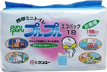 通常1-5営業日で発送:ケンユー 高速道路 地震震災時等でのトイレ確保に 携帯ミニトイレ プルプルエコパック 18個入色 ブラウンブランド ケンユー商品の重量 0.55 ポンド内容量:18個サイズ(外装)165*95*92(mm)、(本体)155*235(mm)オシッコを素早く固め臭いを包み込み、清潔に使える携帯トイレです。ブラント名:ケンユーメーカー名: ケンユー-