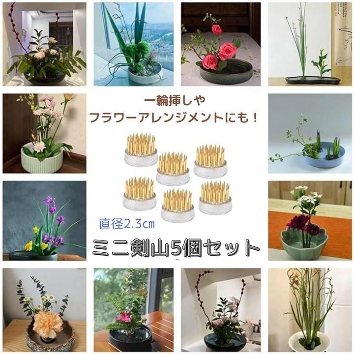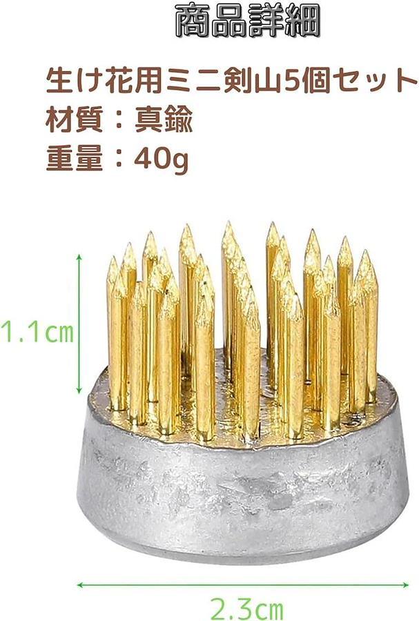 「材質」 銅針・ステンレス 「重量」 40g/個 「サイズ」 直径23mm・高さ20mm・針高11mm 「針数」 37本/個ミニ剣山5個セットですので、玄関、リビング、寝室などお気に入りの花器に花を生けてお飾りください。