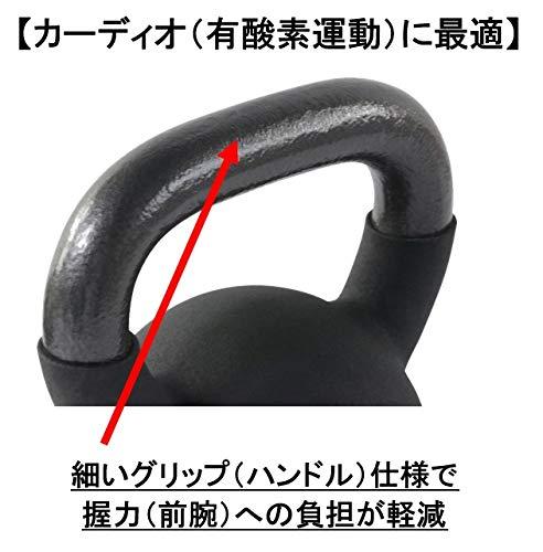 【握り易さを重視したグリップ設計】★従来のケトルベル(当社比)よりも、グリップ(ハンドル)が細く、またグリップ内側を若干広い設計としているため、握り易く、握力(前腕)への負荷を小さく抑えてトレーニング頂けます。(サイズの詳細は添付の写真をご確認下さい。)【カーディオ(有酸素運動)に最適】★握力(前腕)への負荷が小さいため、従来のケトルべル(当社比)よりも、比較的長い時間トレーニング・エクササイズ頂くことが出来、カーディオ(有酸素運動)や運動不足解消、ストレス解消に最適です。【ご家庭での利用に最適】★細いグリップ仕様のため、しっかりと握ることが出来、ハンドルから手が離れるリスクが軽減されます。★ソフトなネオプレーン素材で、床への傷や衝撃も少なく、家庭内での使用でも安心してご利用頂けます。★一般のビニールカバーと比較し、柔らかく、ベタつきや臭いも少ないネオプレーン素材のため、長期に渡って安心してご利用いただけます。【豊富な重量バリエーション】★4kg 6kg 8kg 10kg 12kg 14kg 16kg 20kg 24kg 28kg 32kgを取り揃えています。(ご選択いただけない場合は、在庫切れとなっておりますので、入荷までしばらくお待ち下さい。★KETTTLEBELLKON(ケトルベル魂)製品は、では「Exercise Pro」のみが販売しており、他社は一切販売は出来ません。ご購入の際は販売者名にご注意下さい。