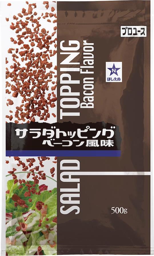 ベーコンの香ばしい風味とザクザクとした食感を、粒上に加工した大豆たん白で再現した、トッピング用食材です。500gの大容量で、湿気を防ぐジップスタイルの袋入りですので、便利にご利用いただけます。クリスピーな食感は、サラダやピザ、パスタ等、様々なメニューに、お好みに合わせてご使用いただけます。