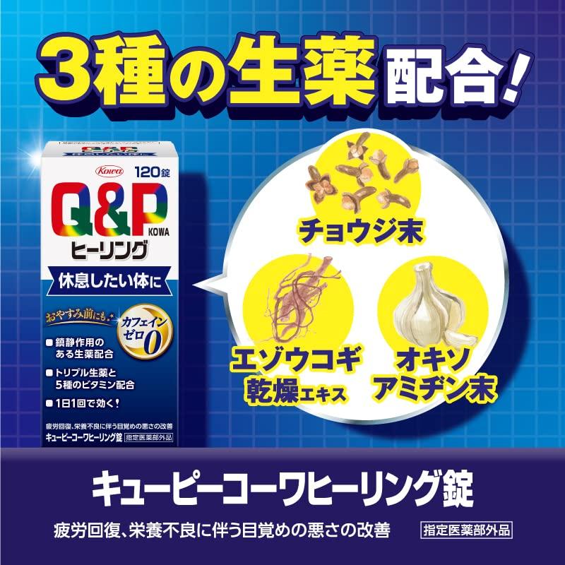 寝る前の服用で、おやすみ中に疲労回復!リラックス効果、滋養強壮作用のある3種の生薬、5種のビタミン、アミノ酸などが疲れた体に作用します。就寝前にも服用可能なノンカフェイン処方です。 疲労の回復・予防、栄養不良に伴う目覚めの悪さの改善 日常生活における栄養不良に伴う身体不調の改善・予防:目覚めが悪い・眠りが浅い・寝付きが悪い、疲れが残る・疲れやすい・体力がない・身体が重い・身体がだるい 体力、身体抵抗力又は集中力の維持・改善 病中病後の体力低下時、発熱を伴う消耗性疾患時、食欲不振時、妊娠授乳期又は産前産後等の栄養補給