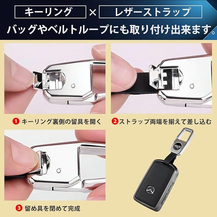 「付属品」キーリング&本体同色のレザーストラップ 「素材」牛革&アルミニウム合金 「ご注意」マツダ純正品ではなく社外品になります。