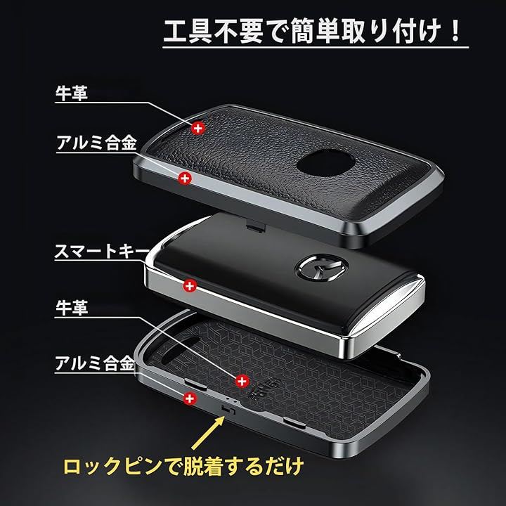 メーカーロゴが露出するデザインで、スマートキーの高級感をそのままキープ。 重厚感ある牛革&アルミ合金素材を採用。