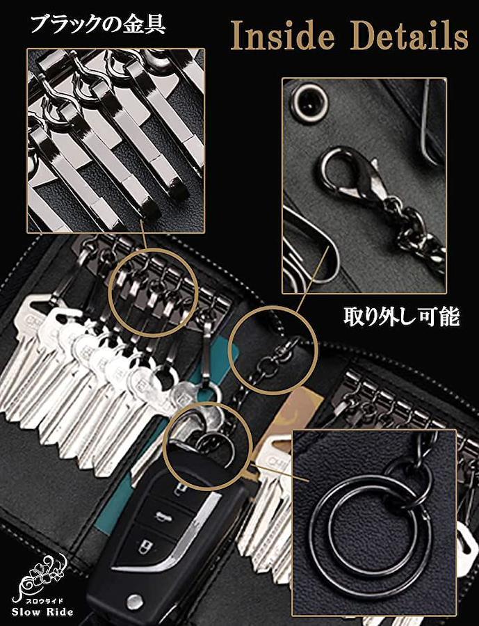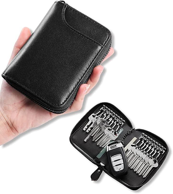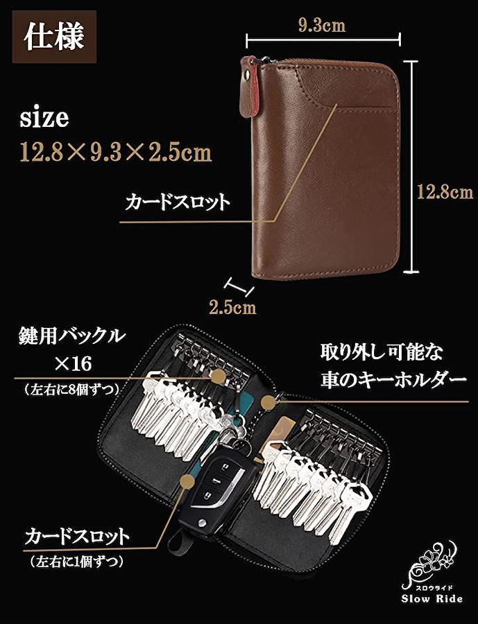 ・鍵約16本収納でき、カードポケットx2つ、車のキーホルダーx1を備えた機能性の高いキーケース。