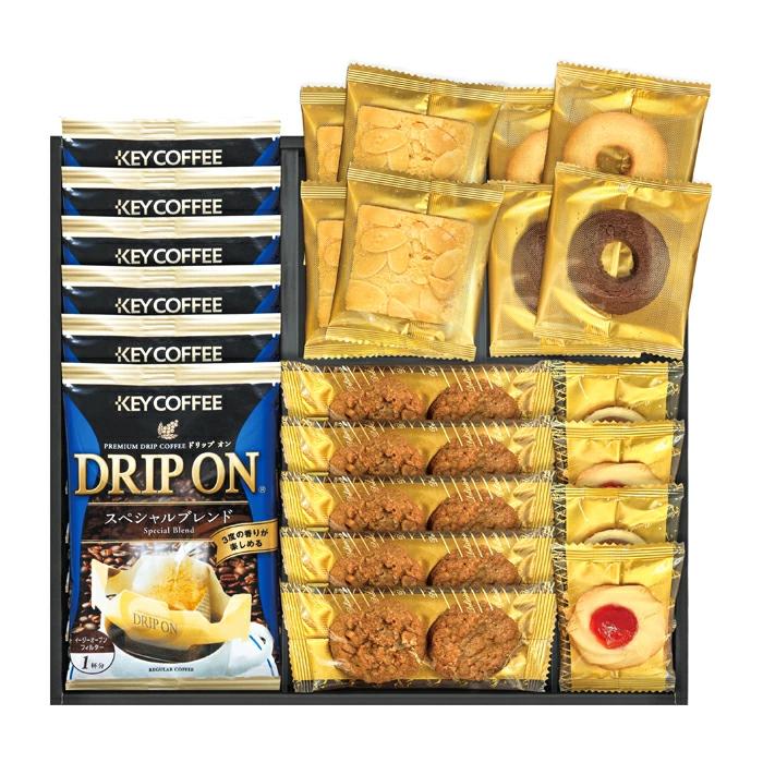 キーコーヒードリップ8g×6、クッキー(プチコーヒー2枚入)×5、クッキー(トフィーアーモンド)×4、クッキー(プチラズリン・うずまき・リングバター・リングココア)×各2