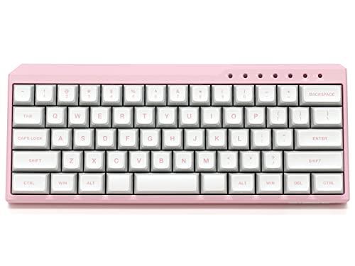 MINILA-R「イチゴ」、「ミルク」は、グレーのアンダーケースにPOPなピンクとホワイトのフレームを合わせたBluetooth、USB接続両対応のコンパクトキーボードです。/キーキャップには白色のベースにピンクの文字をあしらったPBT製二段構造2色成形の「パッチキー」採用しました。/心をわくわくさせるPOPな配色のキーボードで、よりハッピーなPCライフをお楽しみください。//■MINILAより待望の有線無線両対応のコンバーチブルタイプが登場/有線