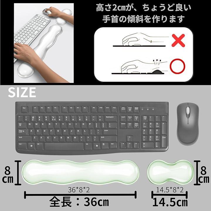 このキーボードパッドとマウスレストのセットは、手首への圧力を分散し、腱や関節へのストレスを軽減するよう設計されています。