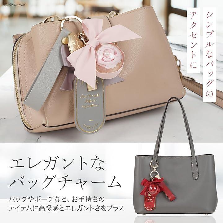「バッグチャームとしても」キーホルダーだけではなく、お手持ちのシンプルなバッグを華やかにチャームとしてもお使いいただけます。