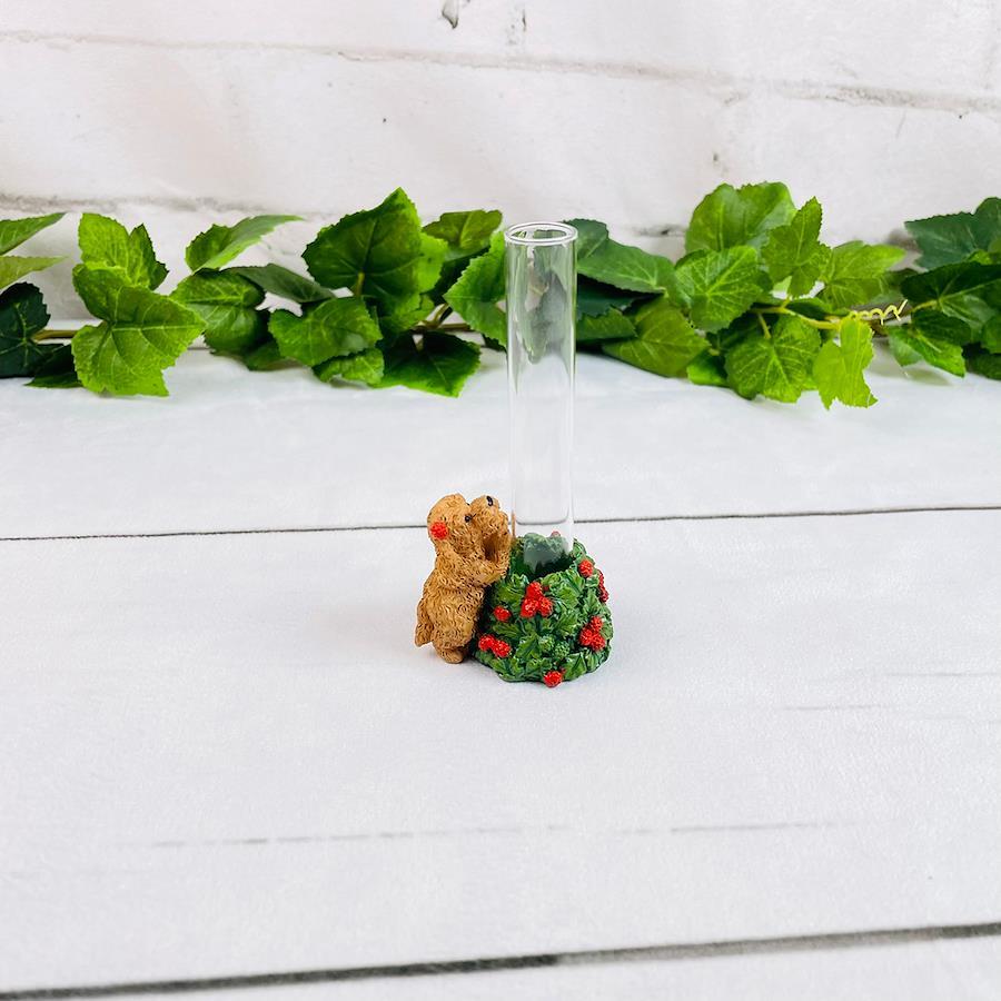 可愛いアニマルたちの世界観をお楽しみいただける一輪挿しです。試験管付きなので、生花でもドライフラワーでもどちらでも使用可能。お好みのお花を生ければ癒されること間違いなし!