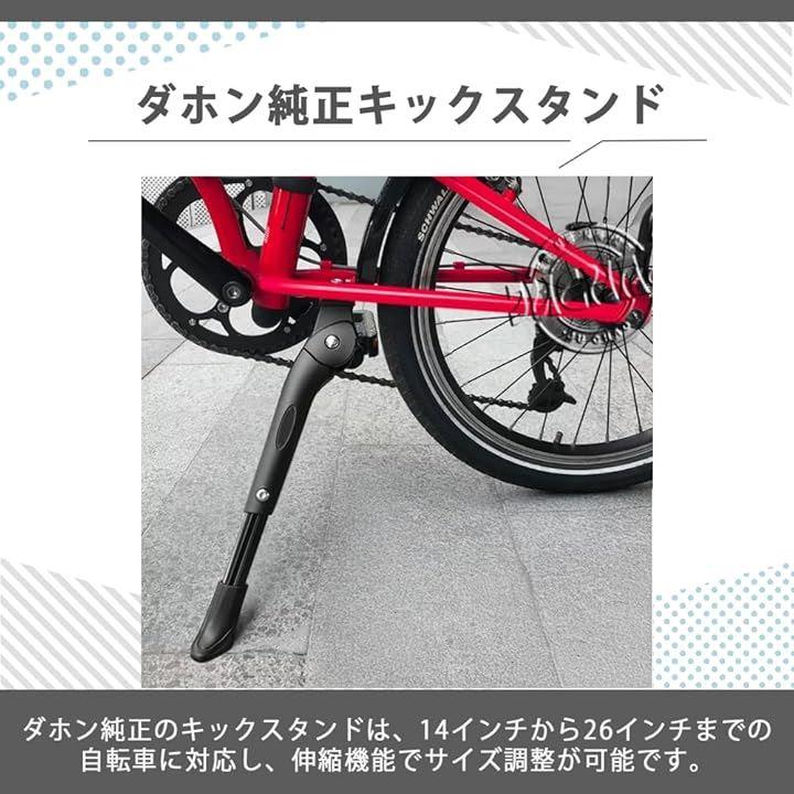 「キックスタンド」キックスタンドは、14インチから26インチまでの自転車に対応し、伸縮機能でサイズ調整が可能です。