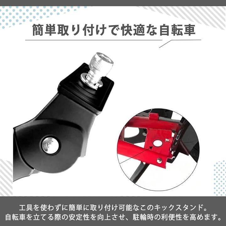 「簡単取り付けで快適な自転車」工具を使わずに簡単に取り付け可能なこのキックスタンド。