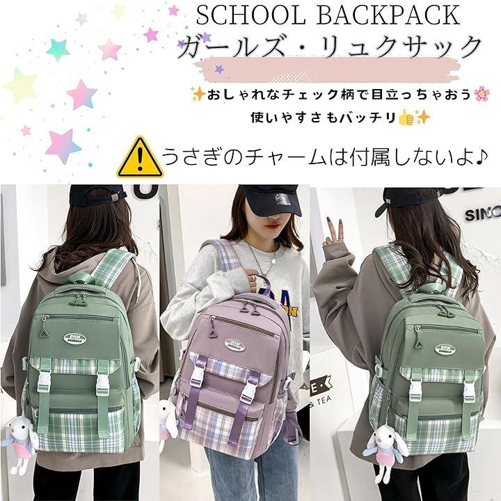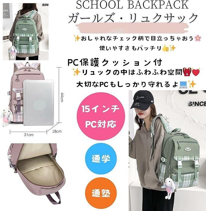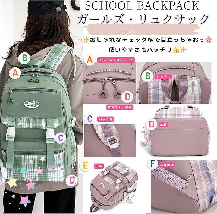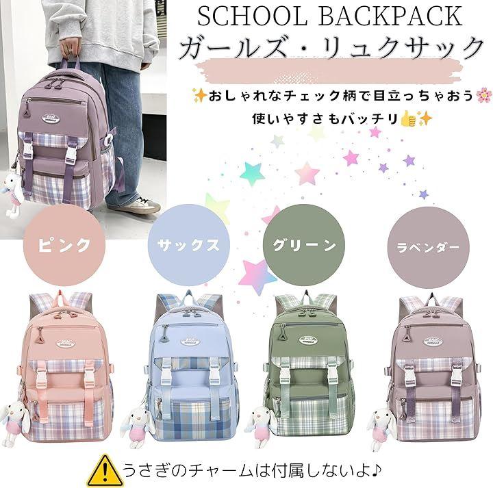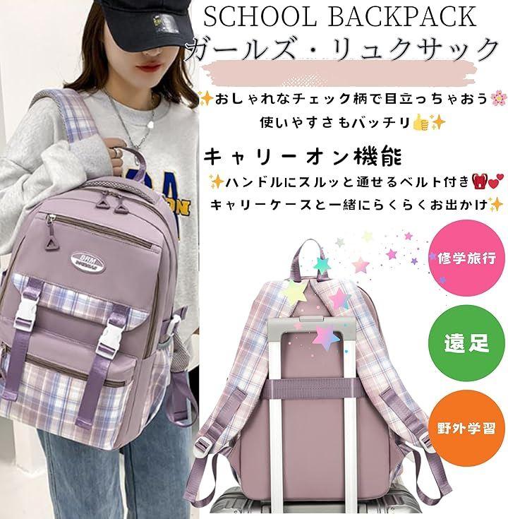 「おしゃれなチェック柄デザインで学校生活がもっと楽しくなるよ」 可愛さ抜群のチェック柄デザインが目を引くこのリュックは、どんなコーデにも合わせやすくて学校や塾で注目の的になること間違いなし。