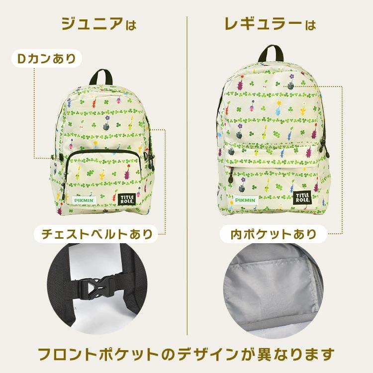 【タンサクデイパック】人気ゲームシリーズ『ピクミン』の世界観を表現したデイパックが登場!ジュニア(17L)とレギュラー(21L)の2サイズ展開。遠足やお出かけなど、普段使いもしやすいアイテムです♪A4サイズが入るメインポケット内はタブレットやPC収納もできるポケット付き。ネームタグは2枚ついているので兄弟姉妹で使える嬉しい仕様◎