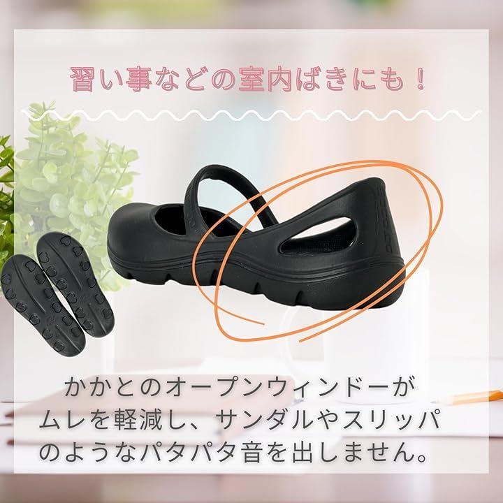 かかとのオープンウィンドーがムレを軽減し、サンダルやスリッパのようなパタパタ音を出しません。