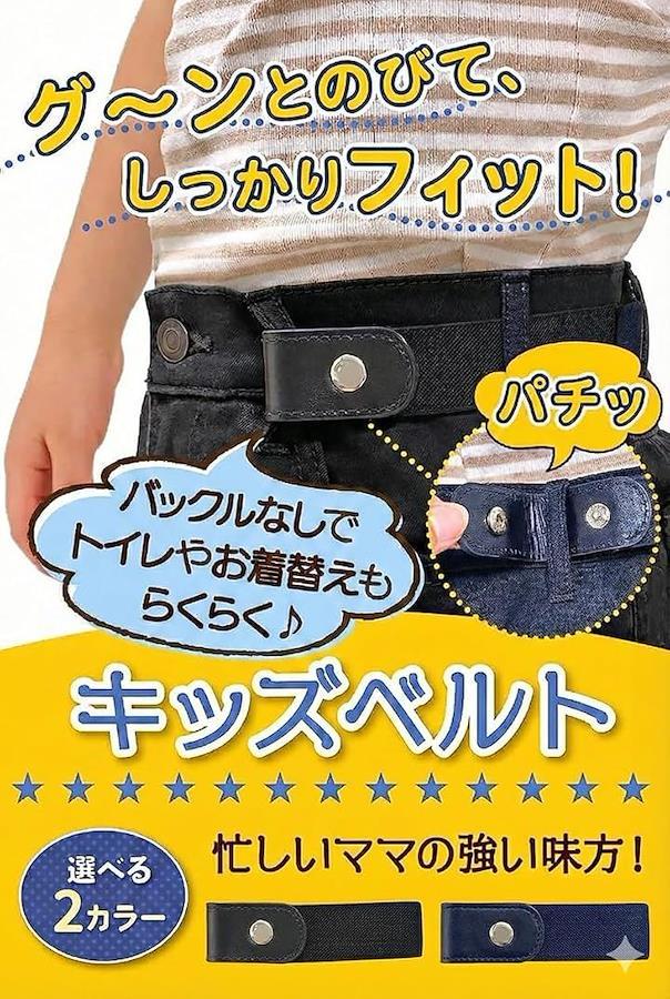 「トイレやお着替えもスムーズに。」 ゴムベルトならではの柔軟性があり、トイレやお着替えの際もサッと対応できるため、忙しいママやパパにも嬉しいアイテムです。