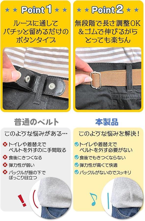 バックルがなく、サイドのベルト通しに固定して使用するゴムベルト。