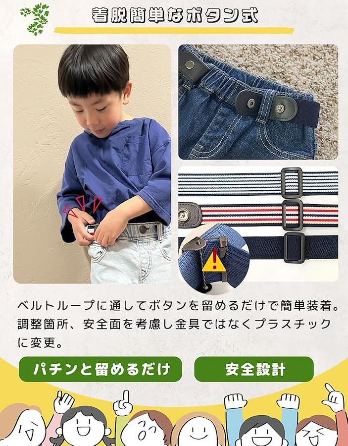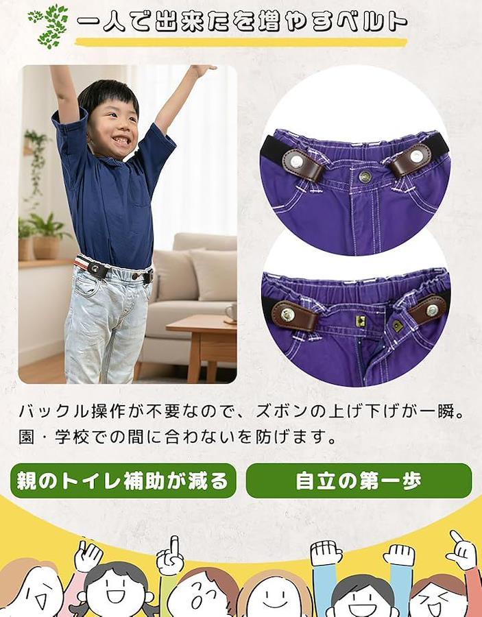 幼稚園保育園・小学校での「間に合わない」を防いでくれるゴムベルトです。