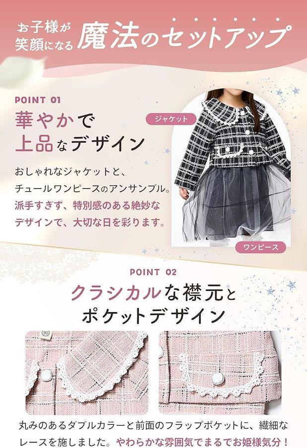 「シーズン問わず活躍する2点セット」ノースリーブワンピースと長袖ジャケットのセットは、春秋のセレモニーはもちろん、夏は単品使い、冬はタイツやカーディガンを重ねて着回し自在。