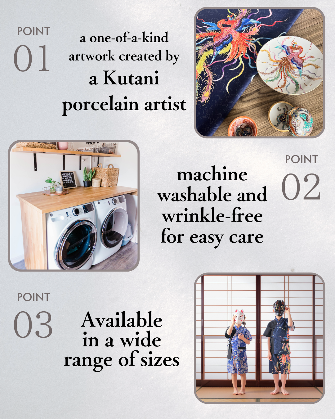 お手入れの手間を気にせず、気軽に日本の伝統をまとうことができます。