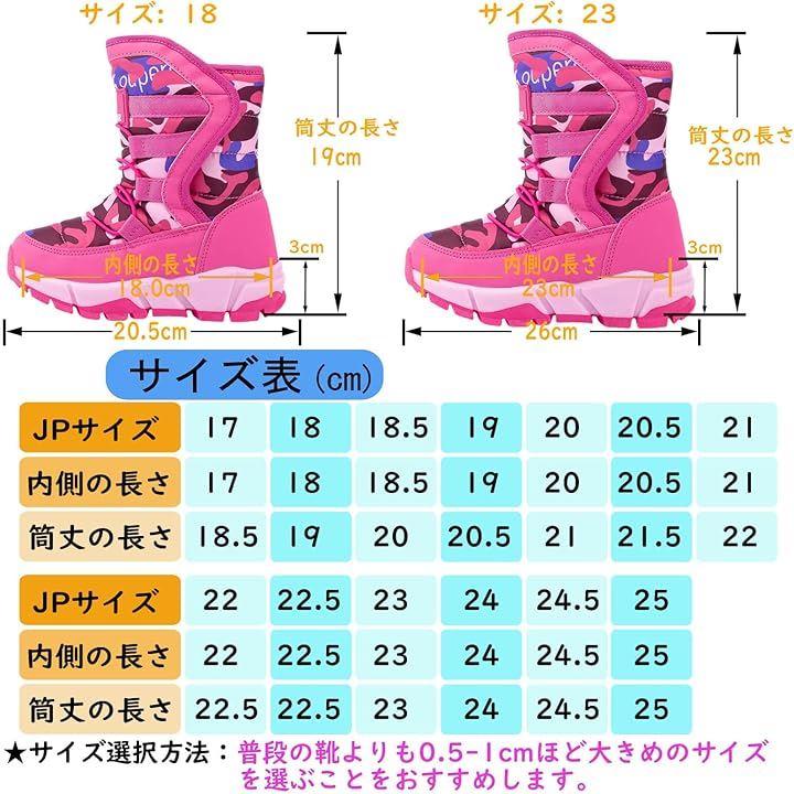 内側が厚めの保温素材のため、運動靴より1サイズ大きめの選択をお勧めします。