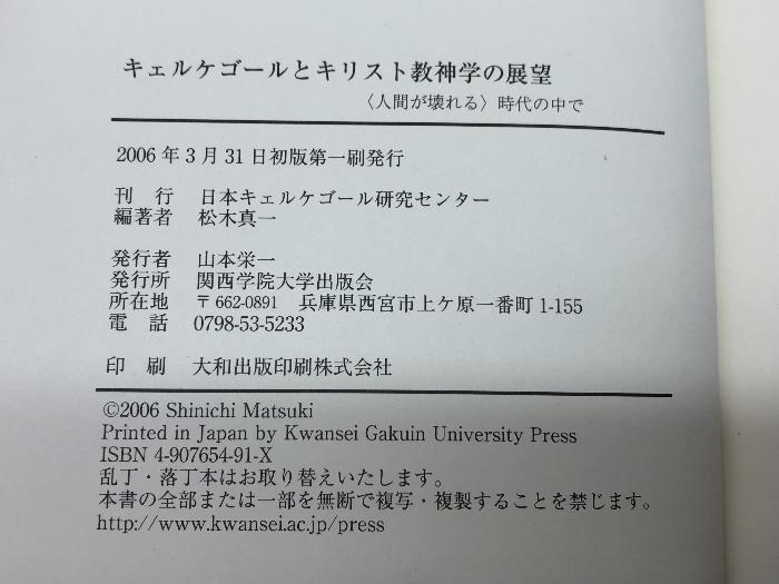 商品名:キェルケゴールとキリスト教神学の展望: 〈人間が壊れる〉時代の中で 橋本淳先生退職記念論文集 キェルケゴール没後150年 関西学院大学出版会 松木 真一