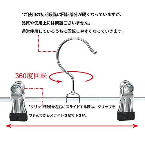 【2022年最新版】サイズ:約 幅30.5×高さ11.5×厚み2.5cm(1本) 。重量:約46g(1本) 。材質:本体/スチールにPVC樹脂コーティング、フック部/ニッケルメッキ。PVCコーティングで保護:クリップの上端にシリコン製ラバーが付いており、指の擦り傷などの心配もありません。 【商品特徴】二つ移動できるクリップ付きステンレスハンガーです。ヘッドが360度回転式なので掛けたい場所でご使用できます。スカートハンガー の2つのクリップは左右に移動が可能なので、衣類に合わせてセットしたい位置にかんたんに移動できます。*ご使用の初期段階は回転部分が硬くなっていますが、品質や使用上には問題ございません。通常使用しているうちに回転しやすくなっていきます。*クリップ部分を左右にスライドする際は、クリップをつまんでからスライドさせて下さい。*目安耐荷重量:約3kg。 【滑り止め設計】強力なクリップで衣類をしっかりキープして、滑り落ちないです。ピンチ先端には生地に優しいすべり止めが付いており、衣類を優しく挟んでくれて、滑り落ちなど心配がありません。ズボン、スカート、マフラーなどに適用するだけでなく、水着とタオルや雑巾でも大活躍です。 【耐久性】ズボンハンガー本体が金属の材質を採用し、高い耐久性があって長持ち使えます。 ハンガーはメッキ仕上げ加工を行ったので錆が付きにくく、シンプルなデザインでクローゼットの服が綺麗に整理できます。クリップ裏側部分が少し鋭くなっておりますので、お取扱には十分ご注意ください。 *また、小さなお子様に与えたり、手の届くところに置かないでください。 【安心サポート】品質に問題がある場合は、お気軽にお問い合わせください。交換します。お客様都合での返品、返金可能です。