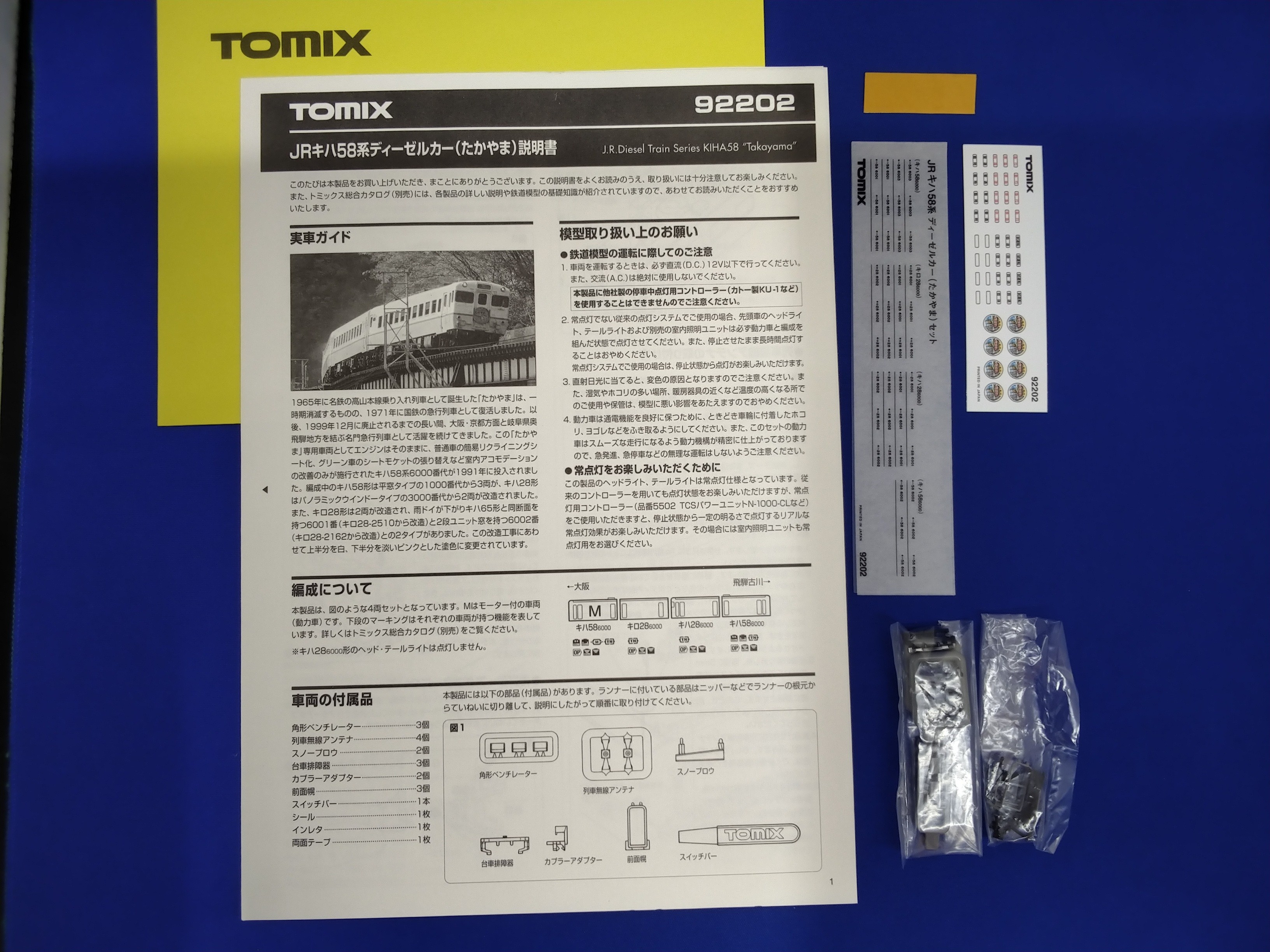 キハ58系ディーゼルカーたかやま4両+キハ58国鉄色 92202他 TOMIX ディーゼルカー TOMIX92202他キハ58系ディーゼルカーたかやま4両+キハ58国鉄色■モーター■付属品取扱説明書、パーツ、シール