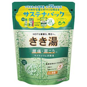 ■商品の特徴温泉ミネラル+炭酸ガスが温浴効果を高め、日常生活の様々な身体の症状を緩和する入浴剤です。●環境配慮型の「サステナパック」へ変更・プラスチック使用量 約75%削減(*1)(*1:従来品ボトル重量比)・小さく丸めて捨てられる。・つめかえ要らずでパッと使える。・計量スプーン付き。スプーン1杯30g。スプーンでチャックを閉められる。容器にスプーンをかけて保管できるフック付き。・安心して保存できるチャック付き。●効果感と心地よさの両方を表現したパッケージデザイン●温泉構成成分(*2)を10%増量(*3)(*2:硫酸マグネシウム、塩化カリウム、炭酸カルシウム、食塩、クレイ *3:従来品比)