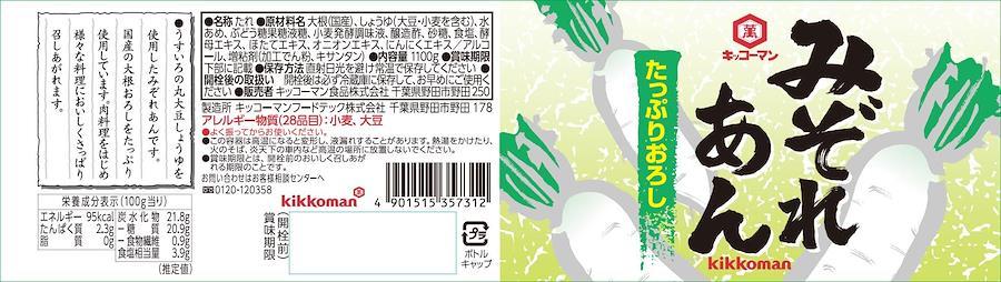 かけるだけ、あえるだけで簡単・手軽に仕上げる惣菜用調味料です。国産大根のおろしをたっぷり使用し、うすいろの丸大豆しょうゆをベースに上品な色合いに仕上げました。