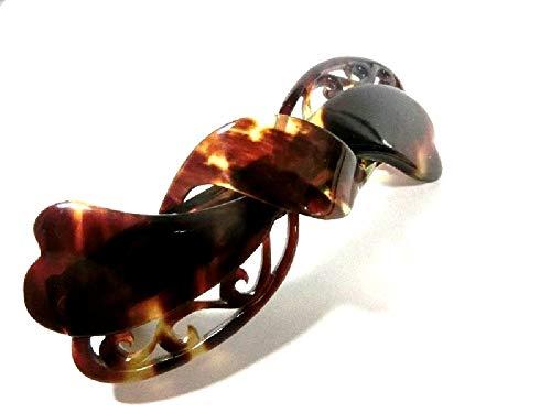 本鼈甲髪留め-01B 【本鼈甲保証書付き】★横最大9,5センチx3、5センチ ★バレッタ金具7,5cm ◎桐箱にお入れして包装してお届け致します ◎べっ甲は天然の物で柄が少し違いがありますのでご了承ください