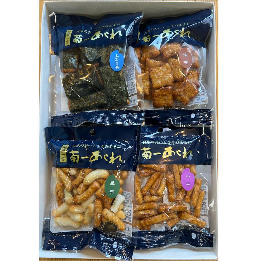 菊一あられ 秘伝の醤油たれを使用した厳選Aセット 8袋入り(4種×各2袋)