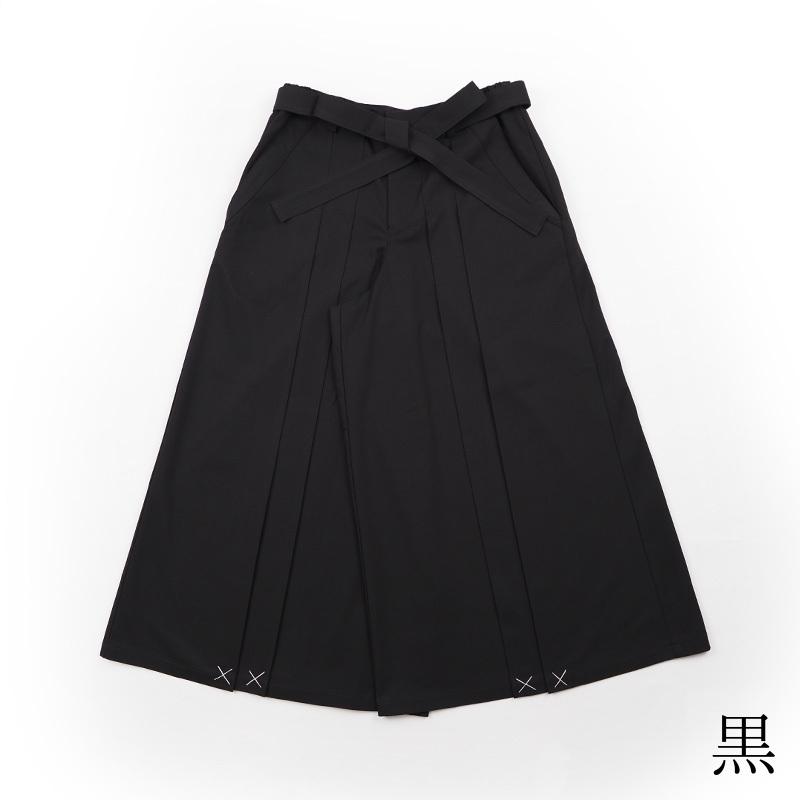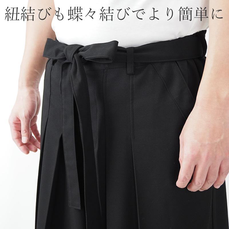 袴パンツ「Knot」の一番の特徴は、袴の「ひだ」を再現した、左右に2本ずつ施された縦のプリーツ。折り目の上部を縫い留めることで、広がりすぎずスッキリとしたシルエットになるよう設計されています。その他「投げ」を意識した両サイドのポケットの切り返しや、腰板を背中に乗せることで生じる前下がりシルエットなど、袴特有のデザインを細部にわたり絶妙に表現しています。飾りの紐ベルトは蝶々結びなど自由にアレンジできて、取り外し可能です。もちろん普通のベルトもご使用いただけます。季節を問わず使いやすい、ポリエステルとレーヨン混合のマットな中肉素材。しなやかでソフトな風合いが特徴で、カジュアルなコーディネートも品よくまとまります。ご自宅でお手入れ可能なので、いつでも快適にお召しいただけます。
