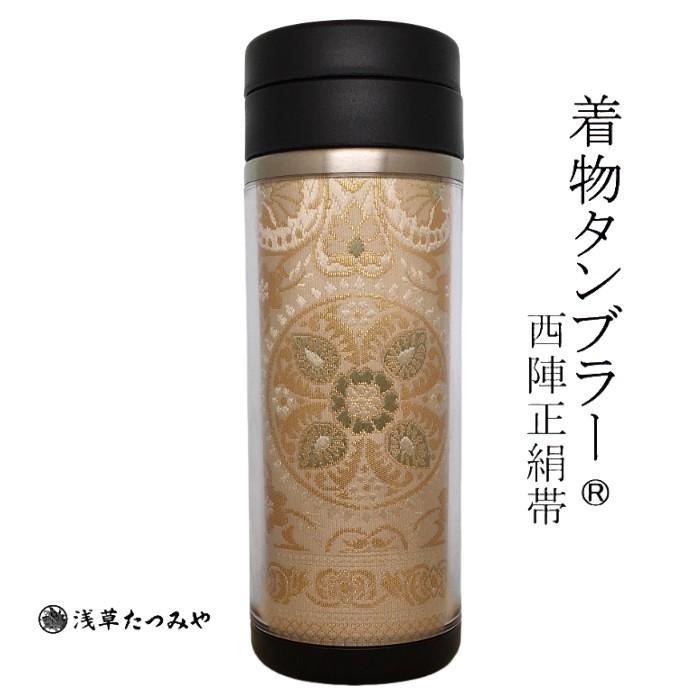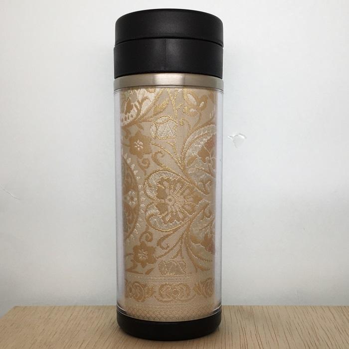 日本伝統の西陣正絹帯を素材に、最も美しい柄の部分を使用した「浅草たつみや」の着物タンブラー。当店では一本の帯から美しい柄の部分だけを厳選し創作するので、それぞれに柄の表情が微妙に違います
