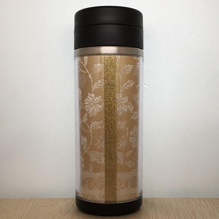 日本伝統の西陣正絹帯を素材に、最も美しい柄の部分を使用した「浅草たつみや」の着物タンブラー。当店では一本の帯から美しい柄の部分だけを厳選し創作するので、それぞれに柄の表情が微妙に違います。