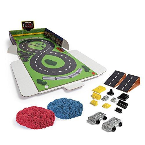 通常のキネティックサンドに比べ作った形がより強く固まるように作られています。もちろん完全に固まることはなく、何回でもほぐして、形を作って遊ぶことができます。キネティックサンドビルドはお子様の物を創る意欲を刺激し、手先の器用さ、想像力を育みます。買ったそのときからお城作りや型抜きなどが楽しめます。楽しく車を作るための型やシャーシ、スタンパーがセットされています。作った車を付属のジオラマキットにセットすればかっこいいサーキットの完成!商品の仕様