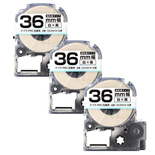 通常1-5営業日で発送:[商品]キングジム用 テプラPRO用 SS36KW 互換テープ [セット内容]キングジム用 テプラPRO用 SS36KW 互換テープ 強粘着 白/黒文字 36mm 3個セットしっかり貼れる強粘着タイプです。テープ台紙に切り込みが入っており、はがしやすいラベルテープです。※こちらの商品はテプラ互換です。ネームランドではご使用頂けません。