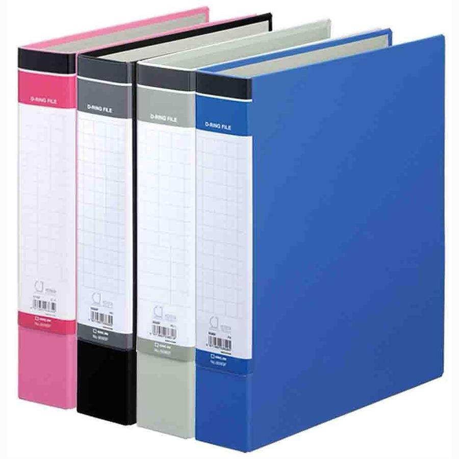 書類の端がきれいにそろう丈夫な貼り表紙のDリング式ファイル。閲覧、検索がスムーズ。