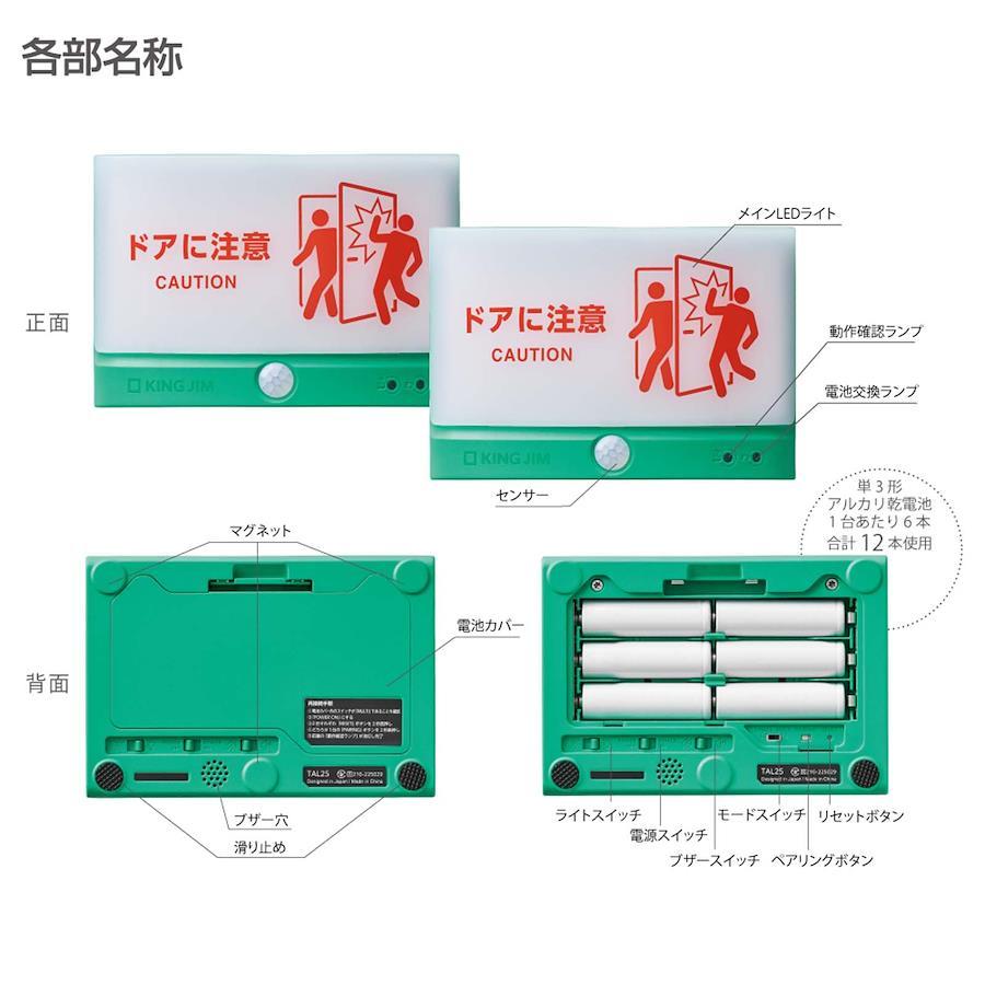 【外形寸法】1台あたり約130(W)×44(D)×90(H)mm【質量】1台あたり約176g(電池含まず)【主な材質】ABS【電源】1台あたり単3形アルカリ乾電池×各6本(別売)【電池寿命】約2年(1日あたり30回センサーが感知時)【感知距離】本体に向かう時:最大約1.5m 本体の正面を横切る時:最大約4.0m【感知角度】水平方向:約120°垂直方向:約120°【動作環境】温度:5~35℃ 湿度:30~80%※非結露【保存環境】温度:-10~55℃ 湿度:5~80%※非結露【セット内容】本体(2台)・取扱説明書(保証書付)【免責事項】メーカーによる商品リニューアルに伴いパッケージが変更が行われた場合、新パッケージでお届け致します事ご了承願います。