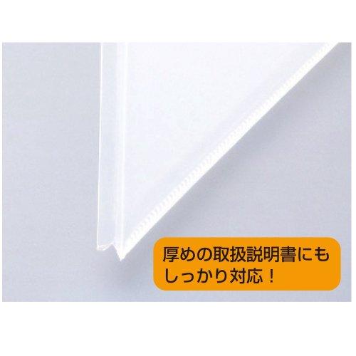 [仕様]サイズ:A4タテ型ポケット数 :12(6枚)最大ポケット数 :20(10枚)適正収納枚数 :取扱説明書12冊+保証書などインデックスラベル1枚付き差替え全面片ワイド背見出し