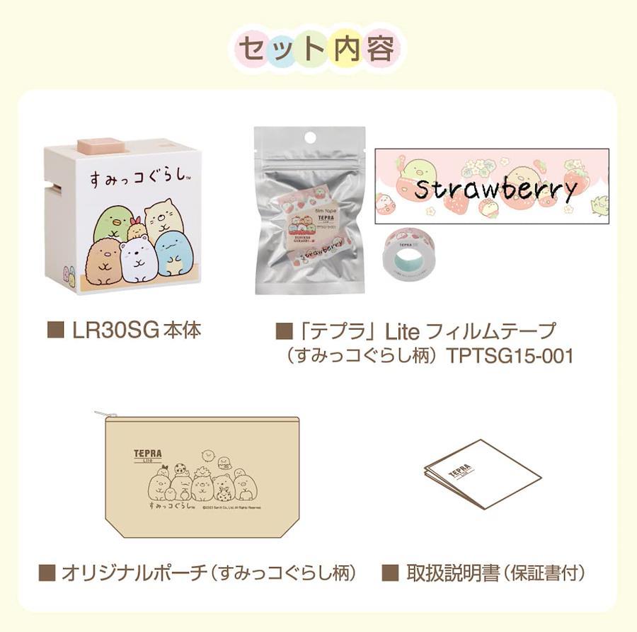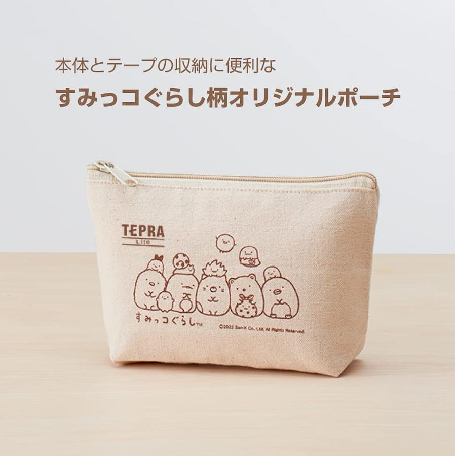 ※すみっコぐらしデザイン オリジナルポーチ&Liteテープがセットになった特別限定商品です。 数に限りがございますので、お早めにご注文下さい! ~ 以下は「すみっコぐらし TEPRA Lite」本体の商品説明となります ~ 本体にかわいいすみっコぐらしのキャラクターが登場! 本体とスマートフォンをBluetoothで接続し、専用アプリ「すみっコぐらし TEPRA Lite」を使って簡単にラベルが作成できます。 すみっコぐらしデザインの絵文字(約200種)と外枠(約20種)をはじめ、お名前付けや整理整頓に便利なテンプレートにも、すみっコぐらしデザインを搭載しました。 自分だけのオリジナル似顔絵の作成や、スマートフォンで撮影した写真をラベルに挿入する機能など楽しい機能も盛りだくさんです。