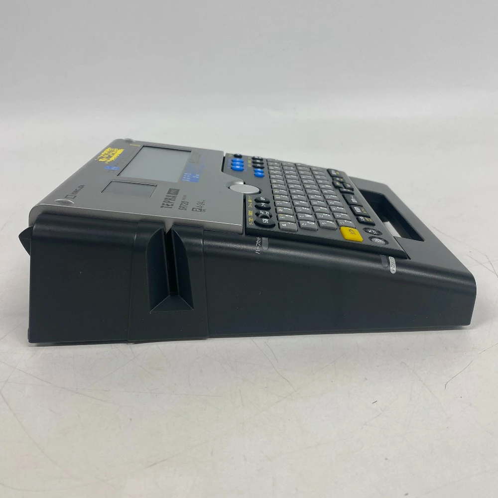 商品説明 | 寸法/幅203×奥行222×高70mm 質量/約1150g(乾電池・テープ除く) 電源/ACアダプタ(付属)・単3アルカリ乾電池×6本 インターフェイス/USB 対応OS/日本語Windows98/98SE/Me/2000Professional/XP 付属品/ACアダプタ・試用PROテープ(18mm幅)1個、PCラベルソフト(CD-ROM)、 その他/Pテープ規格 テープ幅/4から24mm幅 液晶/12文字×4行 書体/漢字8書体 |